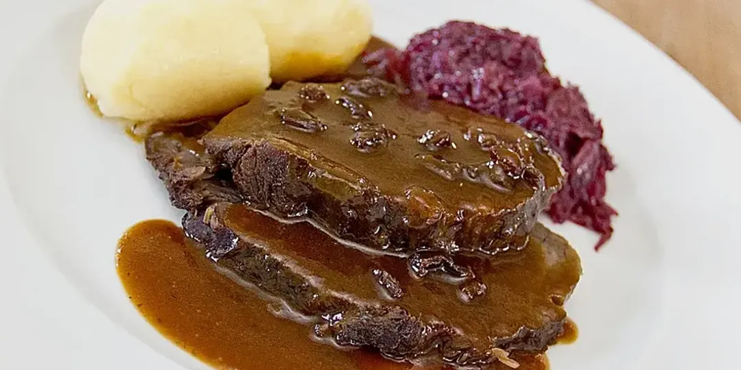 mit Kartoffelstock und Rotkraut