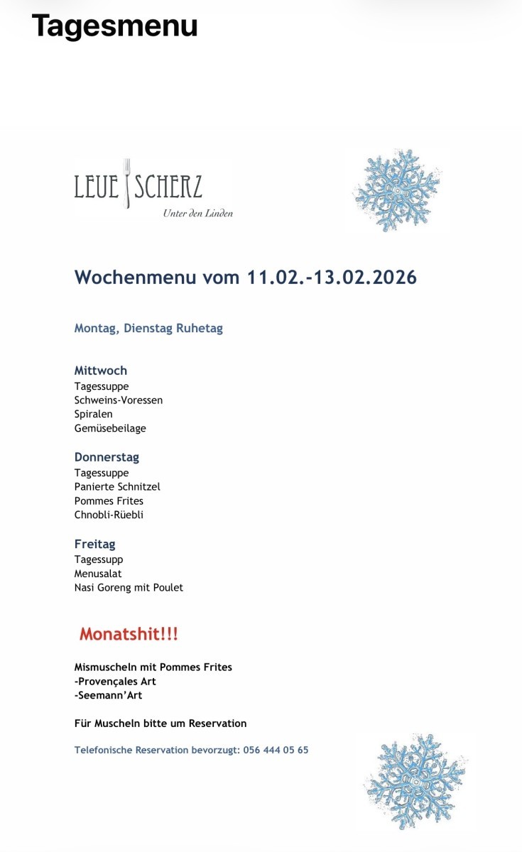 Entdecke unser köstliches Wochenmenu! 🌟 Mittwochs verwöhnen wir dich mit zarter Schweins-Voressen und Spiralnudeln. Donnerstags gibt’s knuspriges Schnitzel mit Pommes Frites und Chnobli-Rüebli. Am Freitag erwartet dich exotisches Nasi Goreng mit Poulet. Und verpasse nicht unseren Monatshit: Mismuscheln mit Pommes Frites! 🍽️ Reserviere jetzt! #wochenmenu #schweizergenuss #kulinarischerlebnis #gutenappetit #monatshit